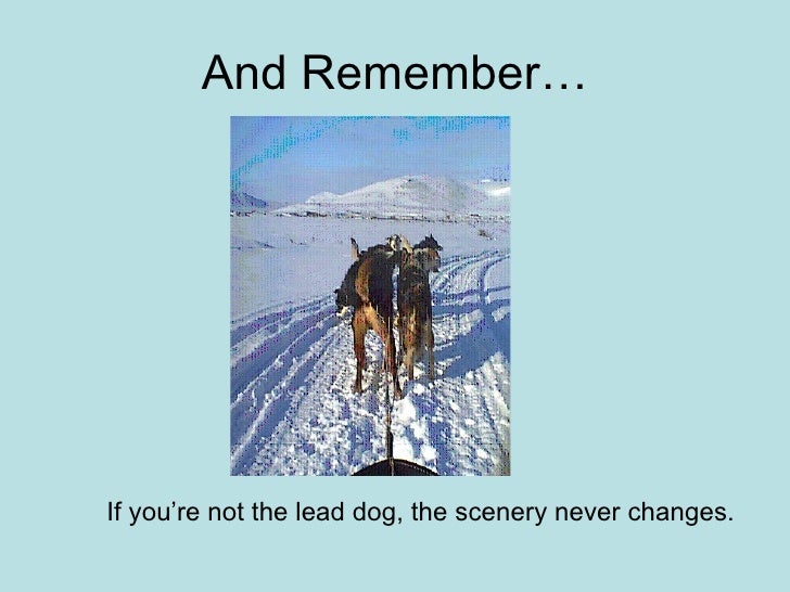 Post a Comment for "If Youre Not The Lead Dog The Scenery Never Changes"